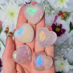 Rose aura quartz meaning and Rose aura quartz properties. This listing is for a single 1 Angel Aura Rose Quartz Heart - Polished CrystalPlease note that these are stock photos of a few of the pieces that we have available. Aura Rose Quartz contains strong and loving energies.