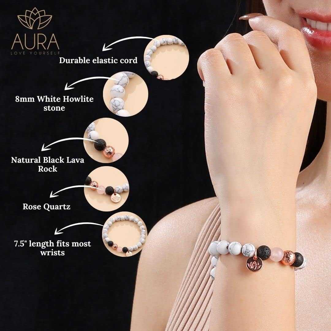 Buy Howlite Bracelet With Rose Quartz Crystals And Healing Gemstone Jewelry For Anxiety Stress Relief Gifts Lava Beads Lava Rock Bracelets For Women Men White Natural Stone Bracelet Oil Diffuser
