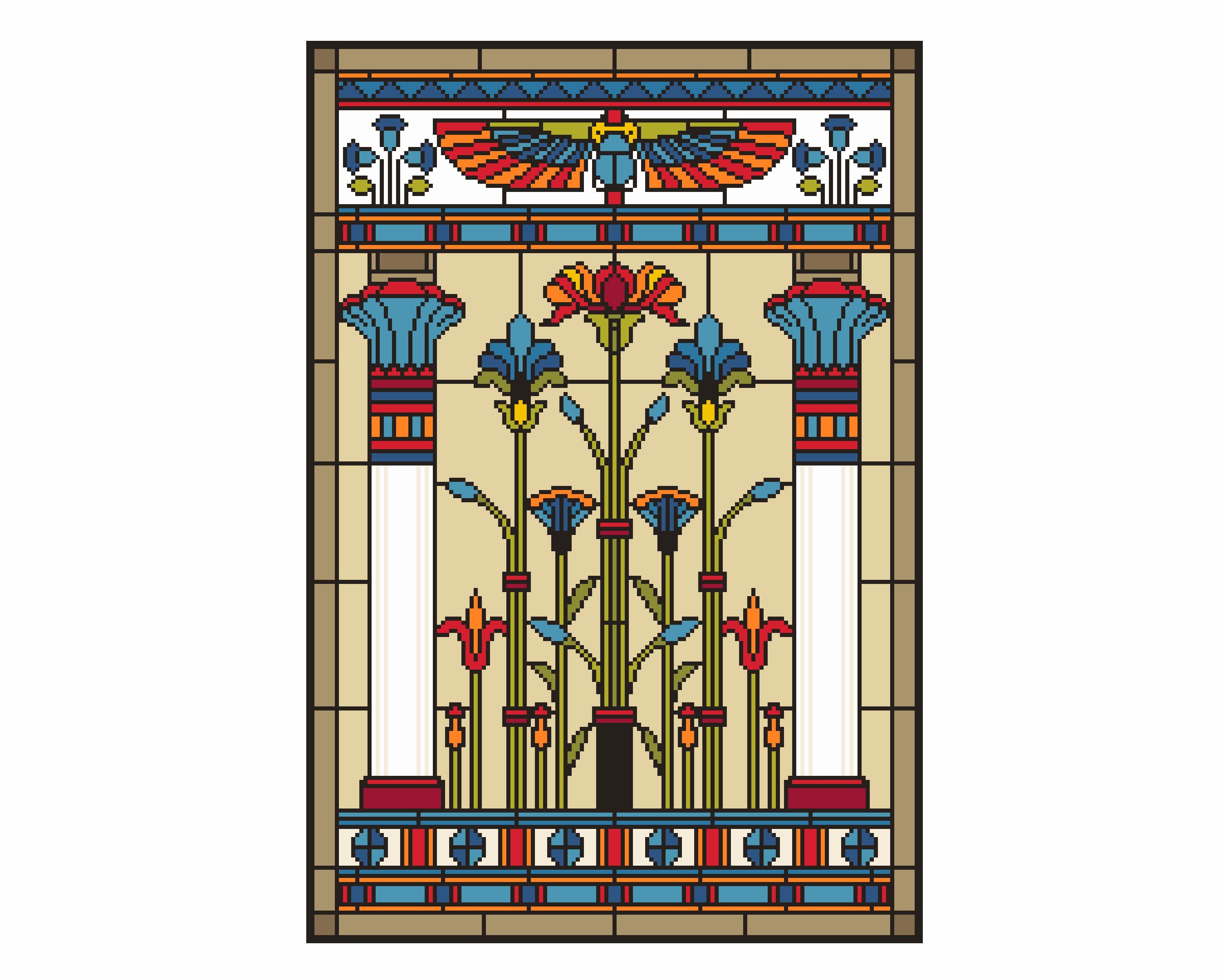 Cross Stitch Pattern Ancient Egyptian Temple With Lotus Fowers Etsy